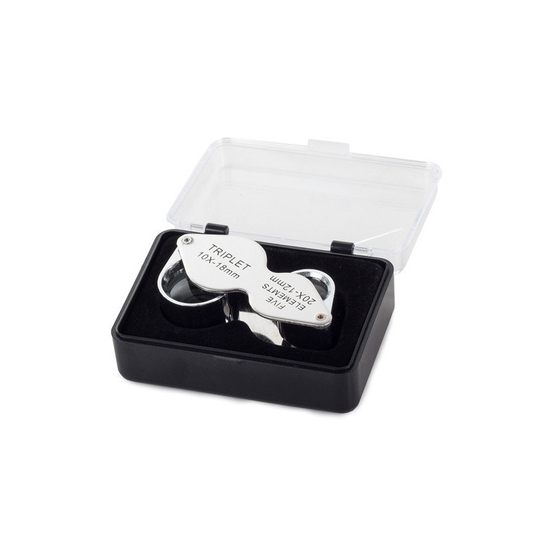 A zsebméretű ékszerész nagyító 10x és 20x nagyítással ideális eszköz a mindennapos használathoz. Használható ékszerészek, numizmatikusok, elektronikai szerviztechnikusok által. Ideális ékszerek, bélyegek, érmék megtekintésére vagy mindennapos használatra. A nagy nagyítóüvegnek köszönhetően a kép nagyon tiszta és könnyen olvasható. Az ékszerész nagyítót elegáns dobozban csomagolták, ideális ajándék vagy meglepetés.