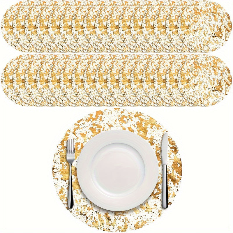 (✨Elegáns és stílusos) Emeld az étkezéseidet a következő szintre ezzel a 12 darabos eldobható arany színű asztali alátét készlettel. Ezek az alátétek nemcsak praktikusak, hanem egyedülálló eleganciát is kölcsönöznek minden asztalnak. Tökéletes választás különleges alkalmakra, mint például esküvők, születésnapi partik vagy ünnepi vacsorák, ahol a részletek igazán számítanak. A luxus arany szín minden terítékhez illeszkedik, és garantáltan lenyűgözi vendégeidet.