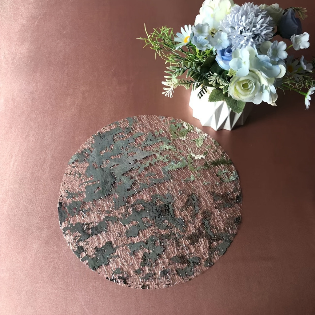 (Finom elegancia) Fedezd fel az otthoni étkezések új szintjét ezzel a 12 darabos arany hatású tányéralátét készlettel. Ezek a tányéralátétek nemcsak a funkcionalitás jegyében készültek, hanem a stílusos megjelenésükkel is lenyűgöznek. Az arany szín eleganciát és luxust sugall, így tökéletes választás minden különleges alkalomra, vagy akár a mindennapok feldobására. Az alátétek könnyen tisztítható anyagból készültek, így nem kell aggódnod a foltok miatt, és hosszú távon megőrzik kifinomult megjelenésüket.