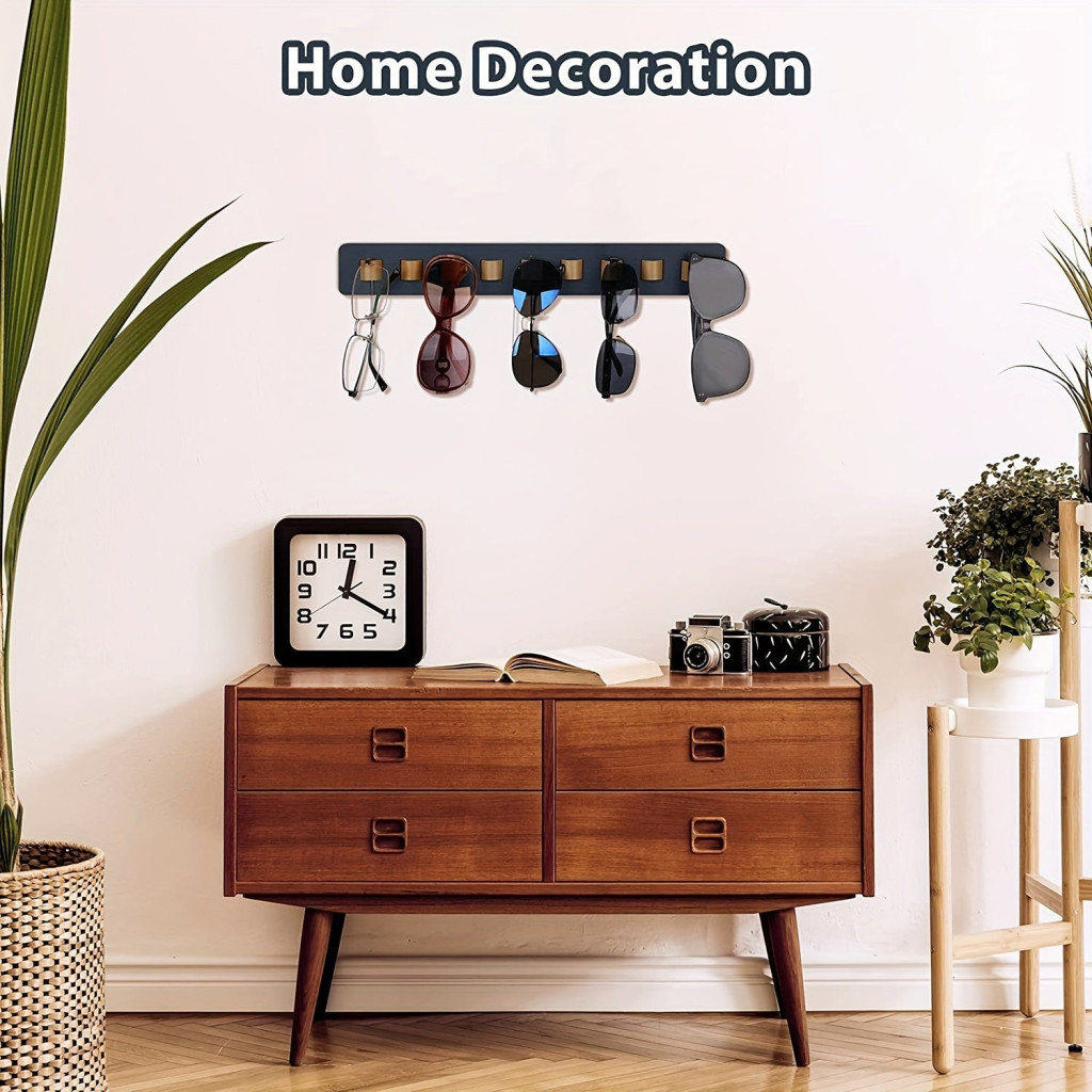 Fedezd fel a modern rusztikus stílus és a praktikum tökéletes kombinációját ezzel a fából készült napszemüveg-rendezővel! Ez a falra szerelhető szemüvegkijelző és tárolóállvány nemcsak a szemüvegeid tárolását teszi egyszerűvé, hanem a lakásod dekorációját is feldobja. Akár 9 szemüveg tárolására is alkalmas, így mindig kéznél lesz a megfelelő darab, amikor szükséged van rá. A természetes faanyag és a gondosan kidolgozott részletek harmonikus megjelenést kölcsönöznek a környezetednek, miközben biztosítják az optimális funkcionalitást.