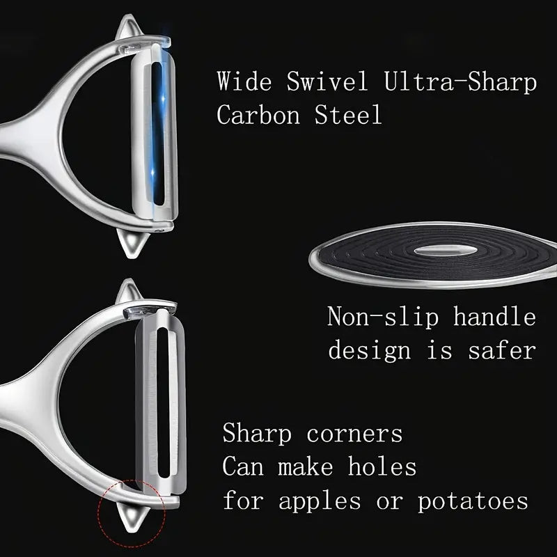 (Funkcionalitás) Fedezd fel a konyhai eszközök új dimenzióját ezzel a rozsdamentes acél zöldség- és gyümölcshámozóval, amelyet úgy terveztek, hogy minden hámozási feladatot könnyedén megoldjon. Az ergonomikus, csúszásmentes fogantyú biztosítja a kényelmes és biztonságos használatot, így a hámozás még élvezetesebbé válik. Az éles penge precíz vágást tesz lehetővé, így a zöldségek és gyümölcsök hámozása gyors és hatékony. A modern kialakítás nemcsak praktikus, hanem stílusos kiegészítője is lesz konyhádnak.