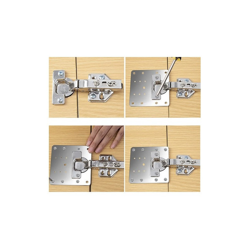 A szett 4 javító lapot és a hozzájuk tartozó csavarokat tartalmazza, így akár 2-4 zsanért is megjavíthatsz vele. Univerzális felhasználhatóságának köszönhetően szinte bármilyen bútordarabhoz alkalmazható.