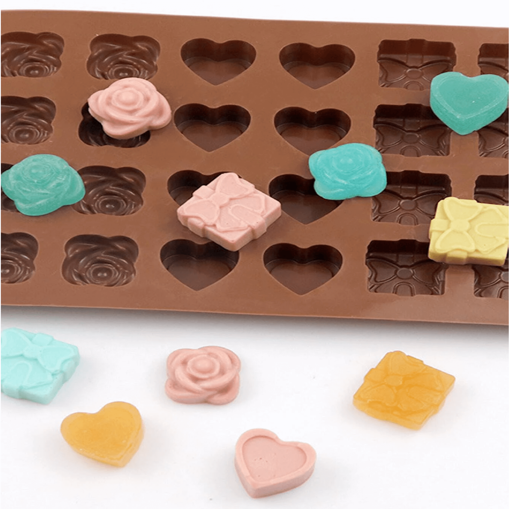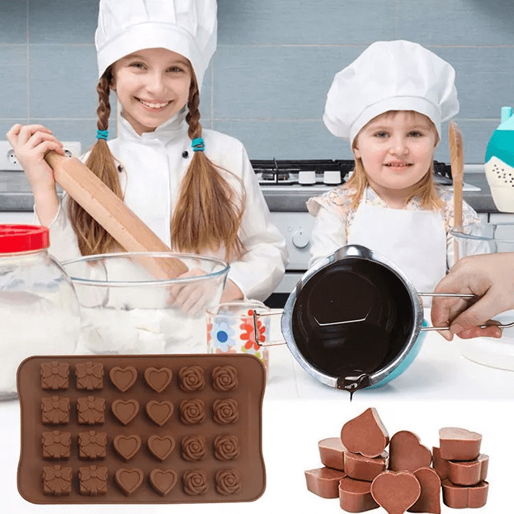 A szilikon egy strapabíró és rendkívül hőálló anyag, így használhatod a fagyóban és a sütőben is egyaránt. A forma 100% nem mérgező szilikonból készült, nem tartalmaz egészségre kártékony anyagot. A kütyüvel készíthetsz csokoládé pralinét nyuszi, maci, kacsa, szív, ajándék és virág formában. Mosása egyszerűen megtehető semleges folyékony szappannal, és nem karcoló szivaccsal. A szilikonformába tett megkeményedett csokoládék könnyedén kiszedhetőek, nem ragadnak hozzá a falához.