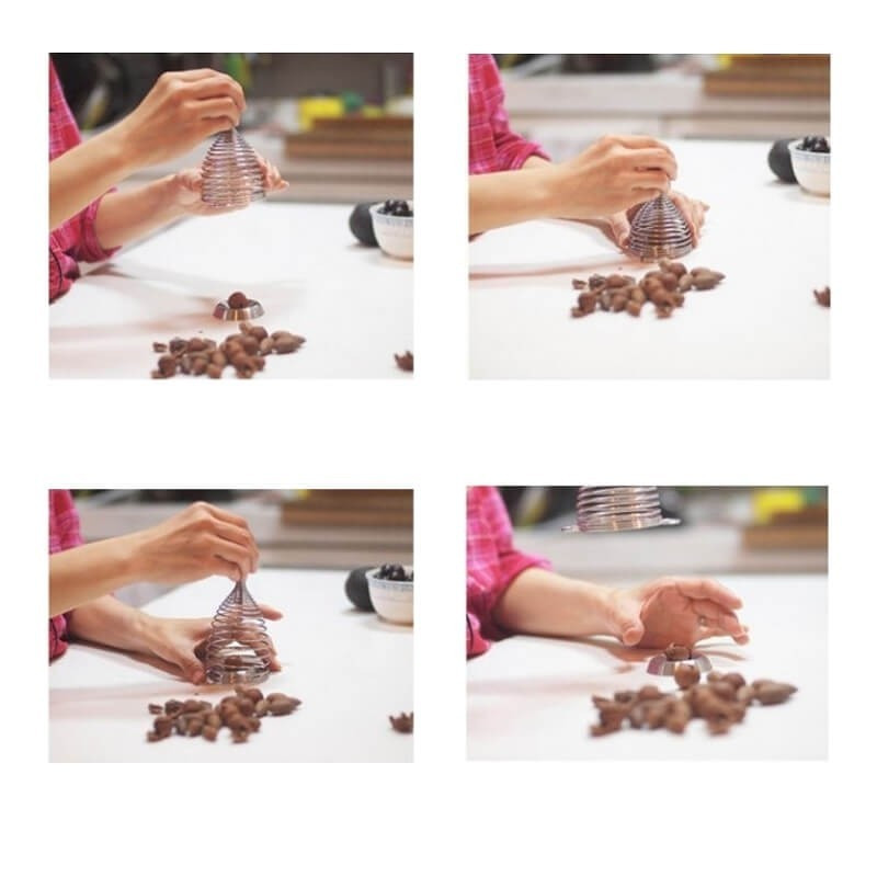A rugóknak köszönhetően erőfeszítés nélkül végezheted el a műveletet. Ráadásul a rugó összehúzódásának pillanatában törik szét a dió, így az megakadályozza, hogy a szilánkok szétszóródjanak környezetedben.