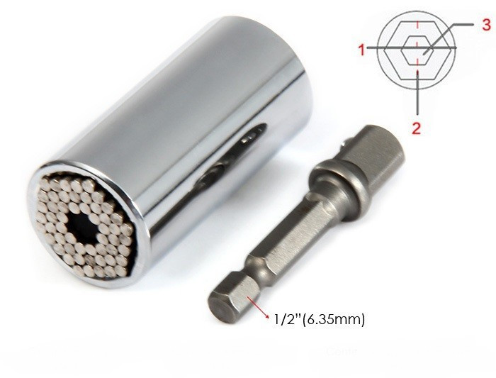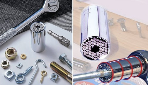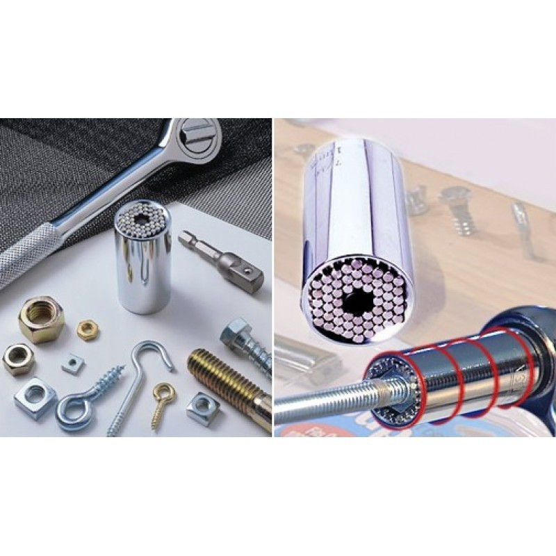 Az Univerzális dugókulcs, csőkulcs alkalmazkodik az összes mérethez és kialakításhoz. Amikor ráhelyezed a csavarfejre a tűk visszahúzódnak, és körül veszik a csavarfejet, így nem sarkalják le azt!