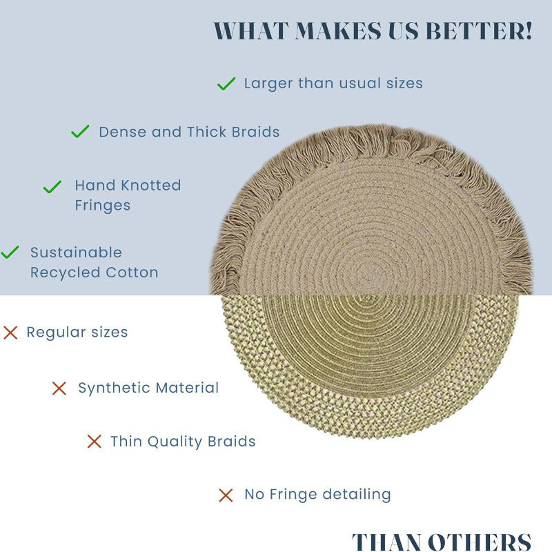 (????Méret) Az alátétek ideális méretűek, hogy kényelmesen elférjenek minden tányér alatt, és védelmet nyújtsanak az asztalnak a szennyeződésektől és foltoktól.