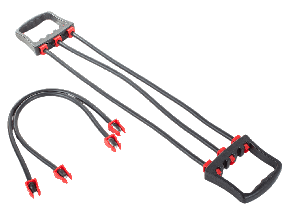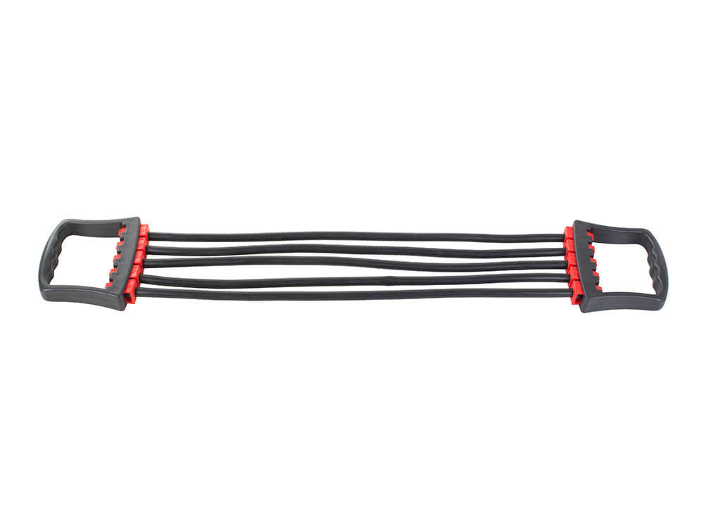 Ezzel a termékkel a teljes felsőtest izmait erősítheted, köszönhetően a gumik progresszív ellenállásának. A gumik eltávolíthatók belőle, így könnyíthetővé téve a fokozatokat (2 szalag 16 kg,3 szalag 24 kg, 5 szalag pedig 40 kg-os terhelést bír el). Előnye, hogy kis helyet foglal el, illetve a használata is egyszerű és kényelmes.