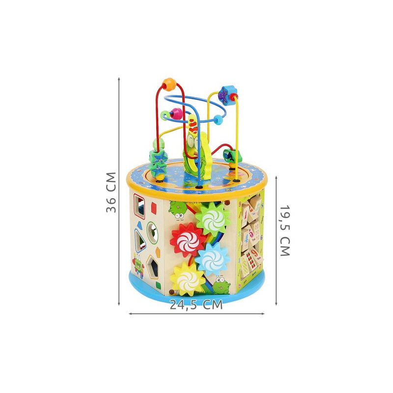 Ez a fejlesztő játék minden babát elbűvöl! A fa oktató kocka nem csak sok-sok órányi szórakozást nyújt, hanem olyan tudást is, ami a jövőben biztosan hasznos lesz. Az interaktív kocka élénk színei serkentik a legkisebbek képzeletét és kreativitását. A mozgó elemek manipulálása segít a kicsiknek gyakorolni az apró ujjacskáikat, kézügyességüket és szem-kéz koordinációjukat. Az oktató interaktív kocka tökéletesen alkalmas önálló játékra és közös játékra a szülőkkel is. Garantáltan leköti gyermeked figyelmét és elűzi az unalmat!