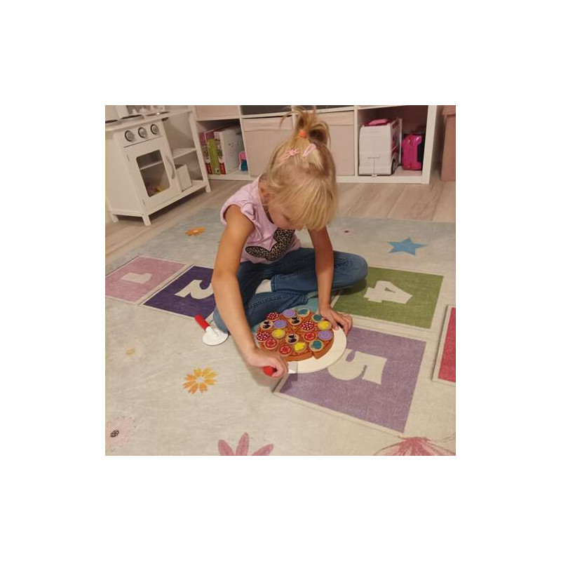 Ez a fából készült pizza tökéletes kiegészítője lehet bármelyik fa konyhának, amely szintén megtalálható kínálatunkban. A játék mind fiúknak, mind lányoknak kiváló választás. A gyönyörű, élénk színek felkeltik a gyerekek figyelmét, serkentik a képzelőerejüket és ösztönzik a játékot.