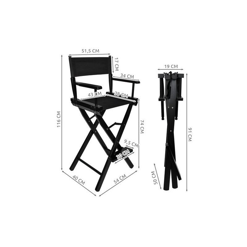 A fekete, időtálló és egyszerű formatervezésnek köszönhetően ez a szék minden belső térben jól mutat. Legyen szó egy modern szépségszalonról, fotó- és filmforgatásokról, vagy akár otthoni használatról, ez a szék mindenhol megállja a helyét. Sőt, rendezői székként is tökéletesen funkcionál!