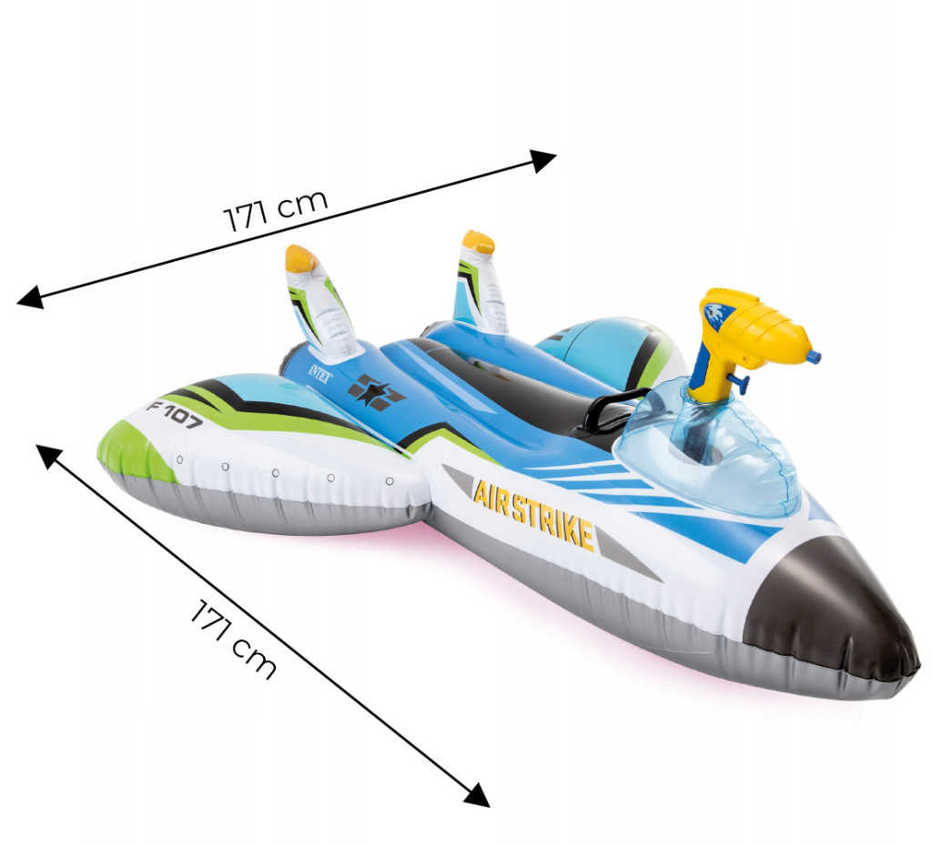 Ez a repülőgép formájú úszómatrac garantáltan felejthetetlen élményeket nyújt a gyerekednek a vízparton. A beépített vízipisztollyal a móka még izgalmasabb lesz!