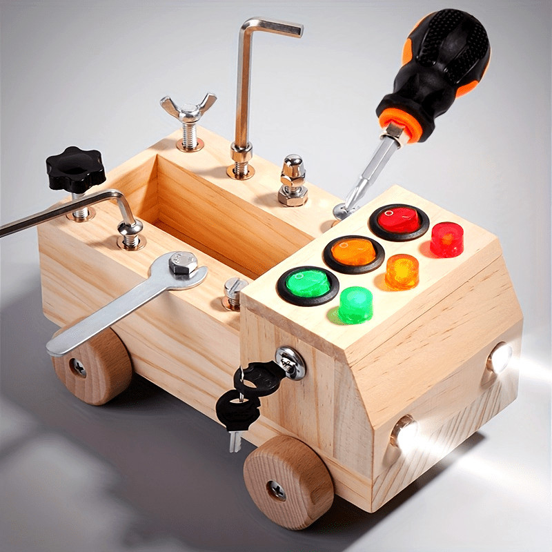 (Csavarhúzó és eszközök) Gyakorlati készségek fejlesztése: A csavarhúzó és javító eszközök segítségével a gyerekek megtanulhatják a csavarozást és a javítást.