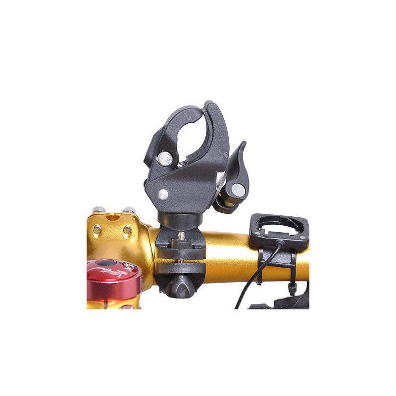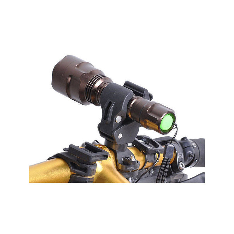 Ha van kedvenc zseblámpád, vagy épp most tervezed megvenni, akkor javasoljuk a biciklitartót! Ezzel a tartóval kézilámpádat előlámpaként is használhatod biciklizés közben. A tartó erős műanyagból készült, az alsó rész csavar segítségével rögzíthető a biciklihez (nincs szükség szerszámra). A képen látható lámpa nem része a szetnek, könnyedén kivehető a tartóból.