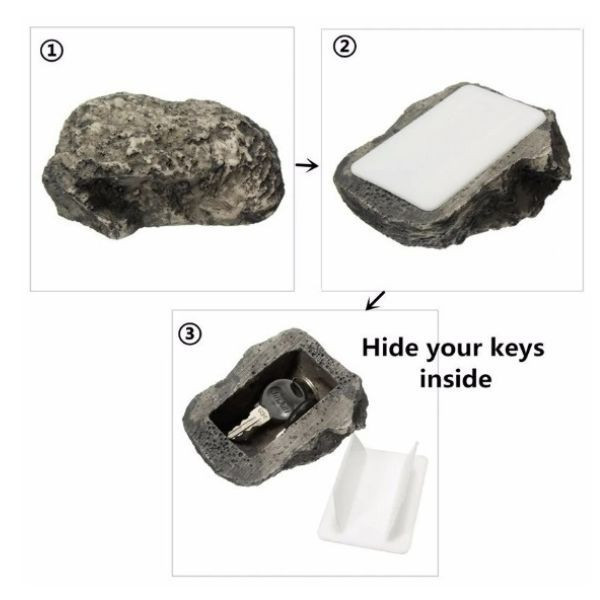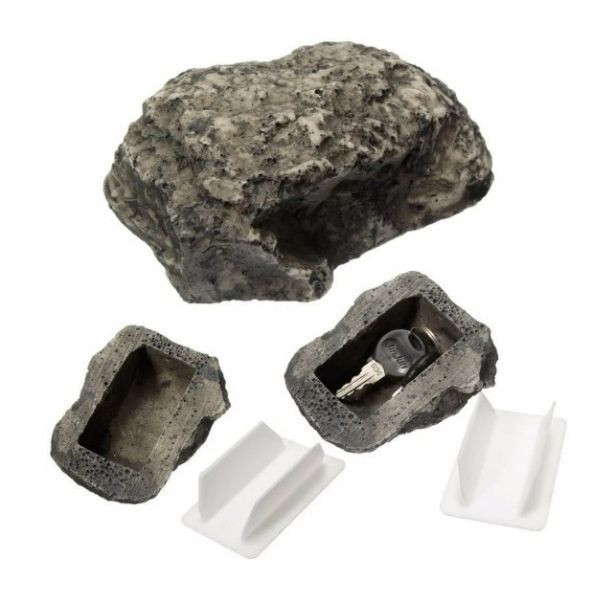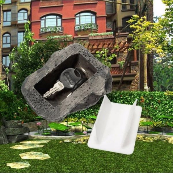 Ez a kő formájú tároló rendkívül valódi hatást kelt, így biztonságos rejtekhelyként szolgálhat a pótkulcsok számára. Az alján lévő fehér tálca biztosítja, hogy a dobozban elhelyezett kulcs ne tudjon kiesni.