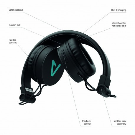 Vezeték nélküli fejhallgató, 35 óra akkumulátor-üzemidő, beépített mikrofon, Bluetooth 5.3, automatikus párosítás, 10 m hatótávolság, kiegyensúlyozott hang, könnyített kivitel, fejhallgatón található kezelőszervek, puha fülpárnák, egyszeű összecsukást lehetővé tevő csuklós kialakítás, 3,5 mm jack, Siri és Google Assistent támogatás.