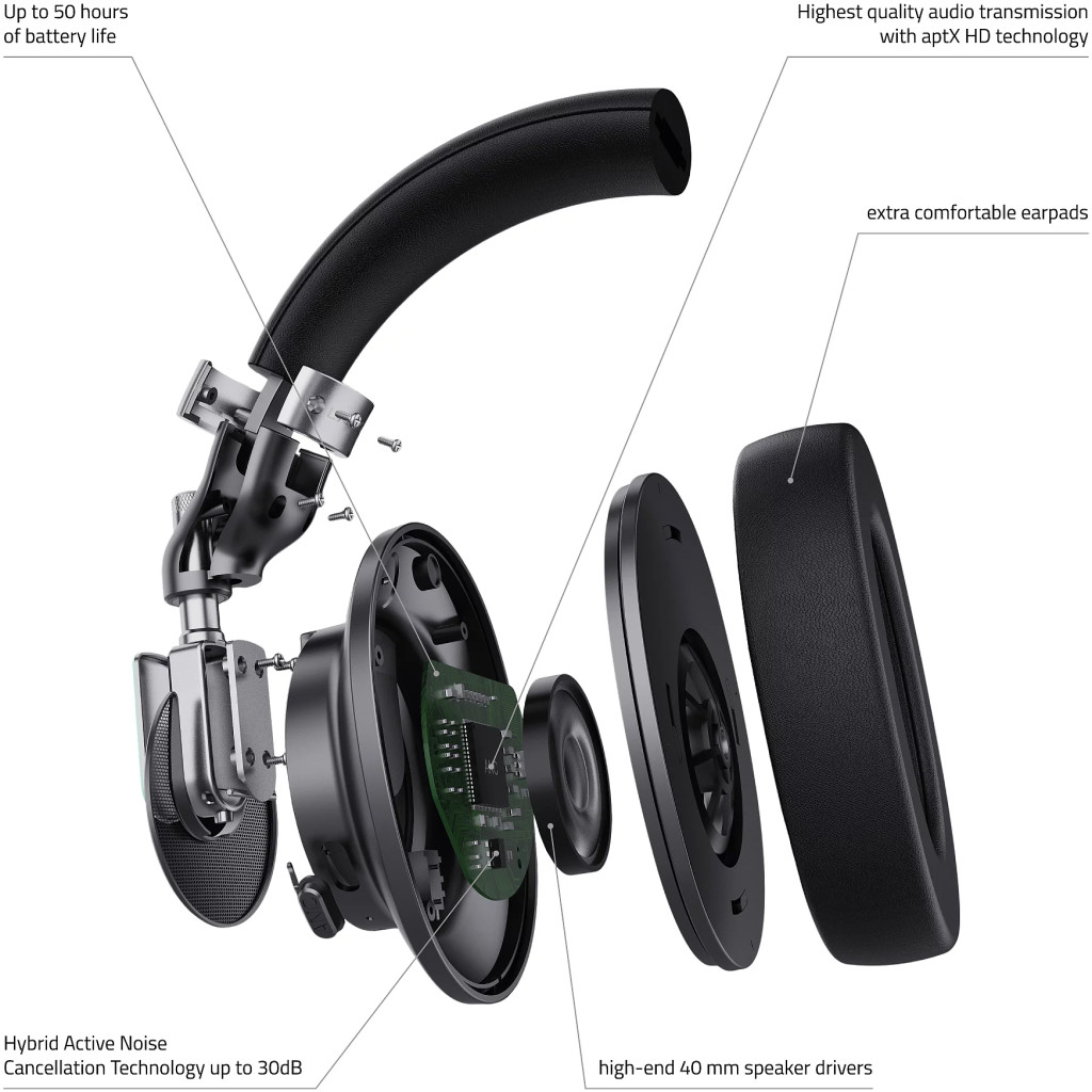 Kényeztesd magad nagyszerű hangzással és csúcsszínvonalú kivitelezéssel. A LAMAX HighComfort ANC a legfényűzőbb aktív zajszűrő fejhallgató, amit nálunk beszerezhetsz. Ha ki akarsz kapcsolni, abszolút nyugalomra vágysz a munkában vagy fel szeretnél töltődni, helyezd fel az ergonomikus kialakítású, extra kényelmes fülpárnás fejhallgatót, és nyomd meg a play-t. Az aptX HD technológiának köszönhetően úgy hallgathatod meg a zenéidet, mint még soha. Vonaton, repülőgépen vagy az irodában egyetlen feltöltéssel hihetetlenül sokáig, akár 50 órán át hallgathatod a zenéidet. Van már kész lejátszási listád?