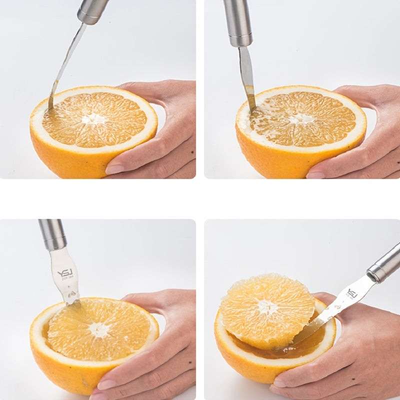 (A narancshámozás forradalma) Fedezd fel a narancshámozás új dimenzióját ezzel a rozsdamentes acélból készült eszközzel, amely megkönnyíti a gyümölcsök hámozását. Ez az eszköz nemcsak praktikus, hanem stílusos is, így tökéletes kiegészítője lehet a konyhádnak. A rozsdamentes acél biztosítja a tartósságot és az időtállóságot, így hosszú távon élvezheted a használatát. Akár egy reggeli narancsot szeretnél gyorsan és egyszerűen meghámozni, akár egy elegáns gyümölcssalátát készítenél, ez az eszköz a tökéletes választás.