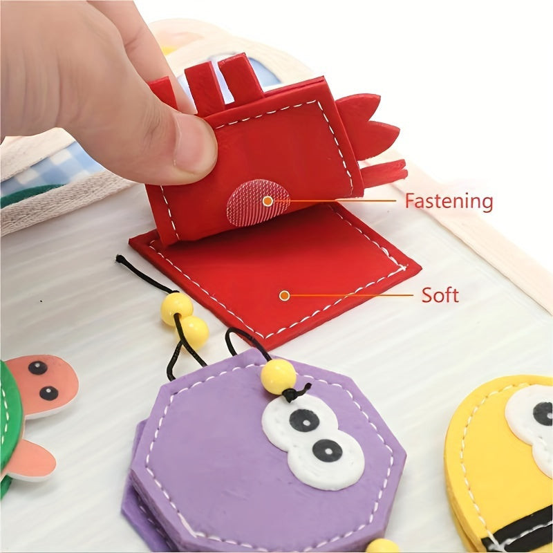 A foglalkoztató tábla különböző textúrákkal és színekkel van ellátva, amelyek serkentik a gyerekek érzékszerveit. A tábla különféle mozgatható elemeket tartalmaz, amelyek segítenek a gyerekeknek megérteni az ok-okozati összefüggéseket, valamint fejlesztik a kéz-szem koordinációt. Ideális választás otthoni játékhoz vagy akár utazás közben is, hiszen könnyen hordozható.