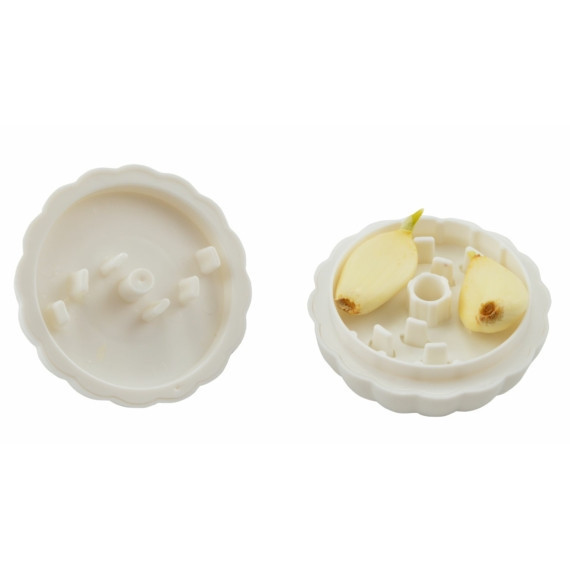 Tegye a megpucolt fokhagyma gerezdet az aprítóba, zárja rá a tetejét, majd forgassa meg párszor az alját és a tetejét ellentétes irányba!