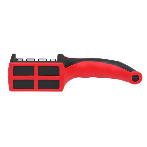 A késélező kompakt és ergonomikus kialakítású, így könnyen tárolható a konyhapulton vagy akár a fiókban is. A biztonsági elemek, mint például a csúszásmentes talpak és a biztonsági fogantyúk, gondoskodnak arról, hogy a késélező stabilan és biztonságosan használható legyen.