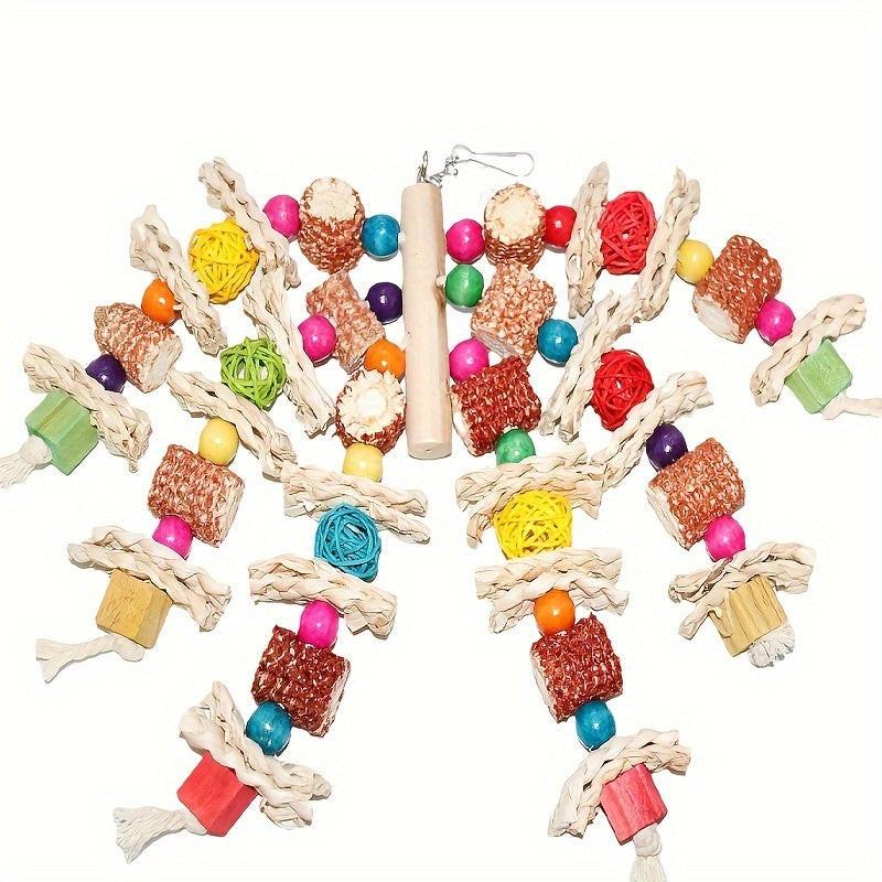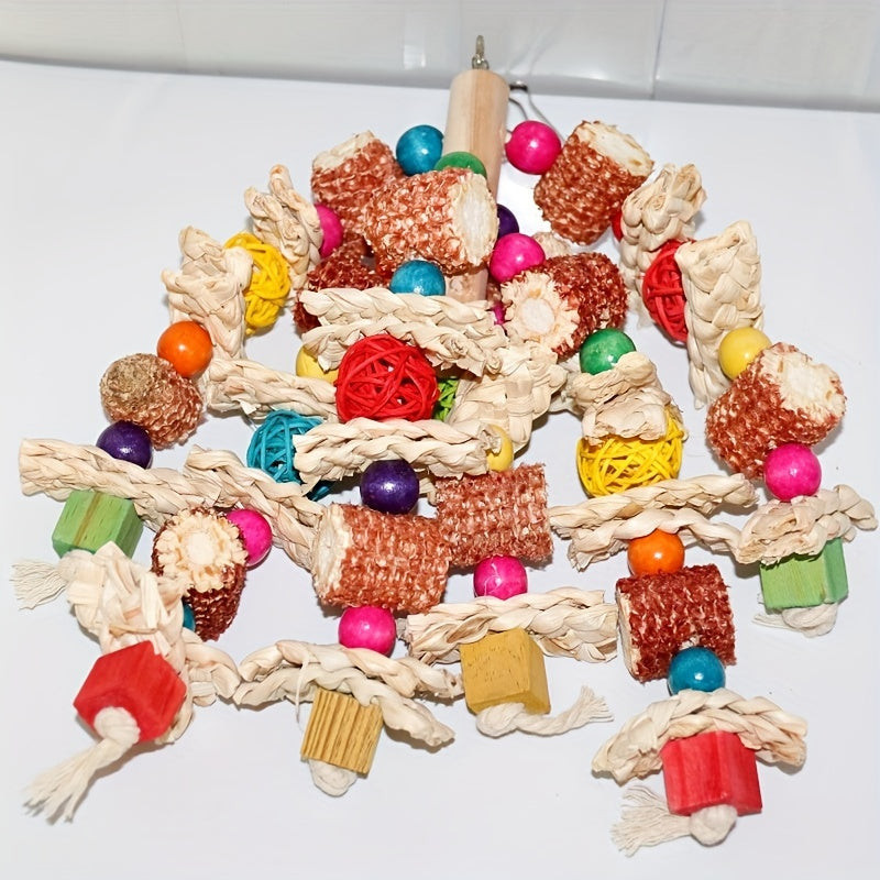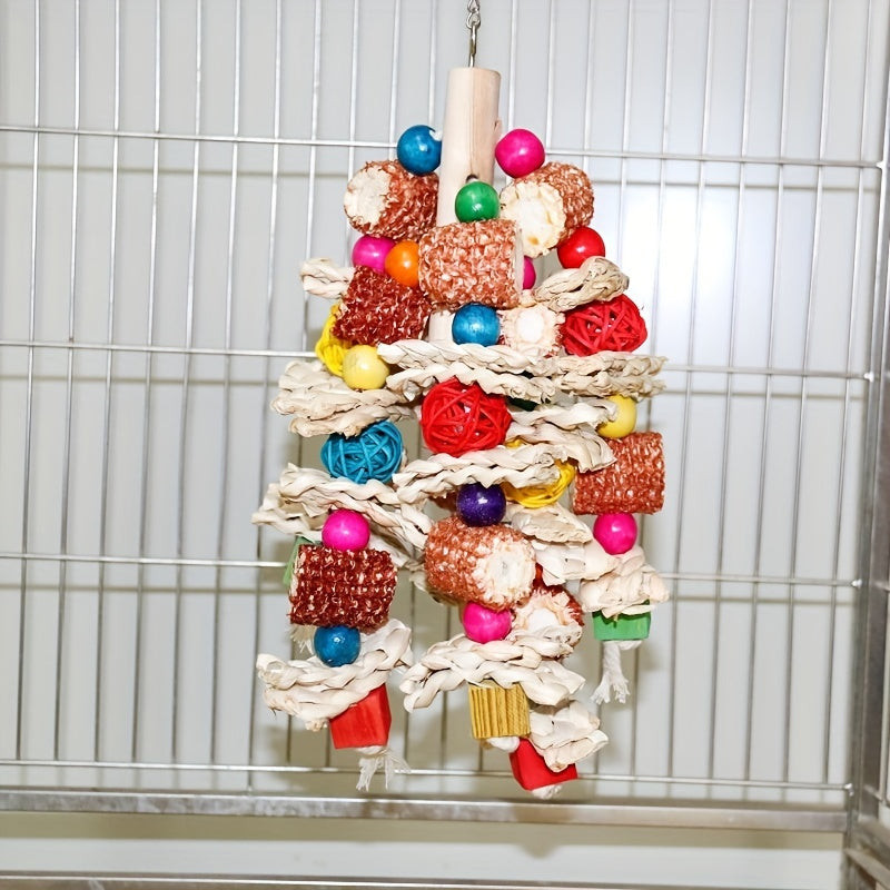(Fedezd fel a természetet) A természetes kukoricacsutka madárrágójáték egy kiváló választás, ha szeretnéd madaraid számára biztosítani a természet közelségét és a szórakozást. Ez a játék a legjobb módja annak, hogy kedvencedet aktívan tartsd, miközben ösztönzi természetes rágó- és játékösztöneit. A kukoricacsutka anyagának köszönhetően a madarak biztonságosan rágcsálhatják, miközben a játék különféle színes elemei vizuálisan is stimulálják őket. A rágójáték nemcsak szórakoztató, hanem hozzájárul a madarak csőrének egészségéhez is.