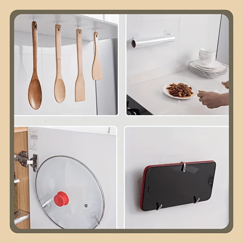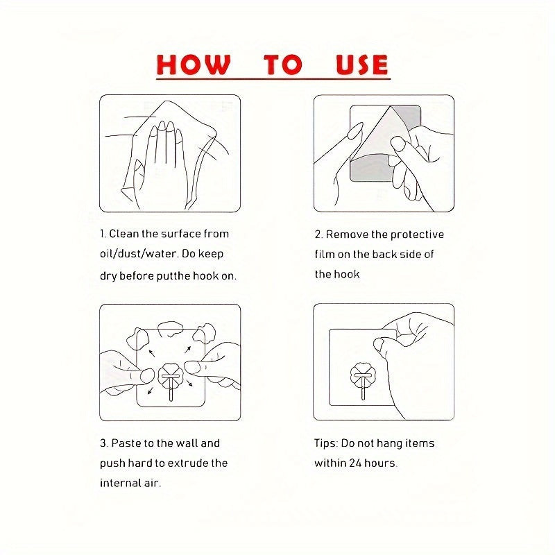 (Egyszerű telepítés) Az akasztók könnyen felhelyezhetők bármilyen sima felületre, nincs szükség fúrásra vagy szerszámokra.