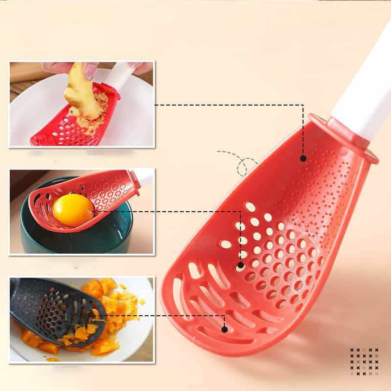 Főzéskor a Te kezedben is percenként cserélődnek a konyhai eszközök? Amelyektől később alig férünk el a konyhában, ráadásul ott van még a mosogatás kérdése is. Aminek a mennyisége folyamatosan növekszik. De képzeld, van rá mód, hogy csökkentsd a felhasznált eszközök számát. A Többfunkciós főzőkanállal tudsz csepegtetni, pépesíteni, pürésíteni, és még darálni is! Tökéletes húsok és burgonya őrlésére és darálására. Fejezd be az eszközök cserélgetését, és használj csak egyet. Ily módon rengeteg időt és helyet megspórolhatsz.