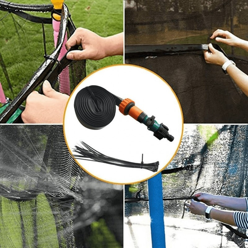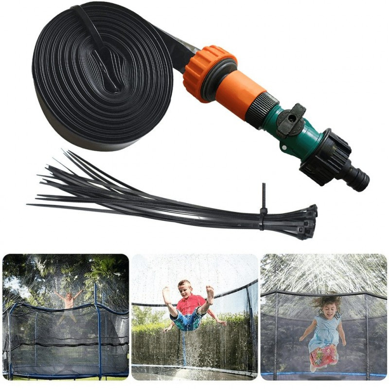 A permetező a szerkezet hálójának felső körvonalához csatlakoztatható. Mivel a tömlő végig lyukacsos, így az egész trambulinban eloszlatja a hűsítő vizet, ez pedig megkönnyíti a hőségben való ugrálást. Felszerelése nem túl bonyolult: csatlakoztatni kell a vízforráshoz, a mellékelt rögzítőkkel hozzáfogni a trambulinhoz, a kapcsolóval pedig már élesíthetjük is a vízpermetezőt. 8 méteres kiszerelésben érhető el.