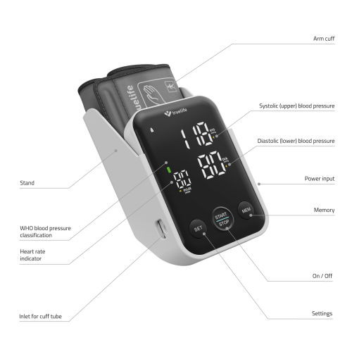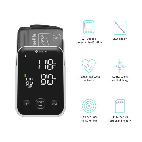 Karon használt vérnyomásmérő, két felhasználó, 2×120 mérési eredmény tárolására elegendő memória, prémium kivitel, LED kontrasztos jól leolvasható kijelző, szabálytalan pulzus kijelzés, praktikus tartó, univerzális mandzsetta 22-42 cm, könnyű kezelhetőség, megtáplálás 3 db AA alkáli elemmel