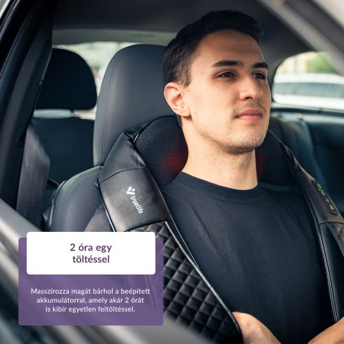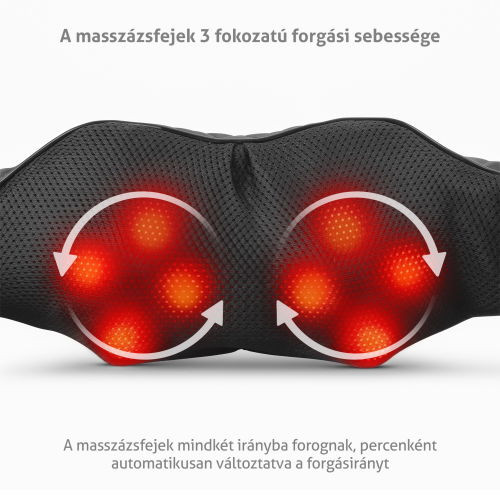 Széles körben használt masszírozó újratölthető akkumulátorral és fűtéssel, 2 óra akkumulátor élettartam, 3 forgási sebesség fokozat, időzítő, 2 forgó fej 8 masszázs csomóponttal, USB-C töltés, kézi tartók, 3D dagasztás, könnyű karbantartás, utazótáska.