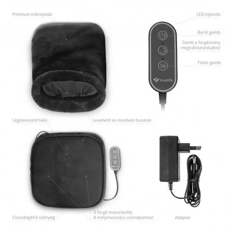 A TrueLife RelaxFeet F3 enyhíti a fáradt lábakat és hátat. 2 forgó masszázsfej 8 fűtőmasszázs csomóponttal. 15 perces időzítő, integrált fűtés - külön is használható, mikropolár mosható huzat, vezérlő.