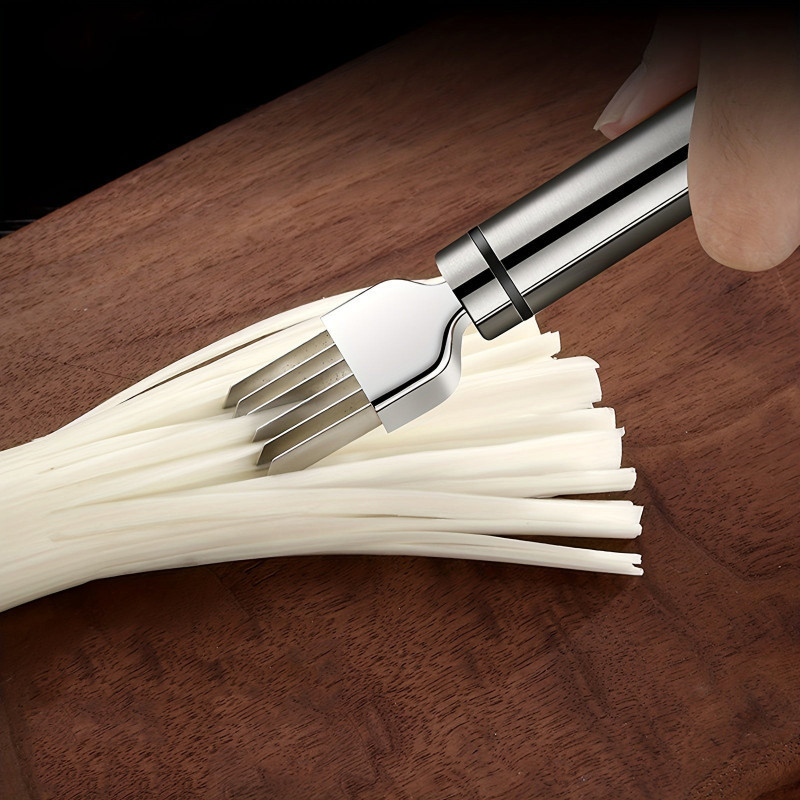 Miért vedd meg? Ez a multifunkcionális rozsdamentes acél szeletelő minden konyhában nélkülözhetetlen kellék! Legyen szó újhagymáról, fokhagymáról vagy bármilyen zöldségről, ezzel a julienne vágóval egyszerűen és gyorsan elkészítheted a finomságokat. Ne fogd vissza magad, tedd könnyebbé és szórakoztatóvá a főzést ezzel a praktikus konyhai eszközzel!