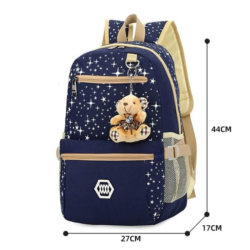 Az Iskolatáska szett tulajdonságai: - Anyaga: Vászon és poliészter - Hátizsák mérete: 44 x 17 x 27 cm - Egymáshoz illeszkedő kialakítás - Mindhárom táska különböző mérettel és kialakítással rendelkezik - Választható színvilág Mit rejt az Iskolatáska szett doboza? - 1 db Hátizsákot - 1 db Oldaltáska - 1 db kozmetikai-neszesszer táskát