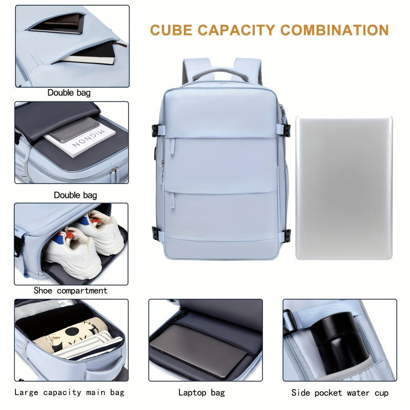 Nagy kapacitású utazó hátizsák, cipőtartó zsebbel